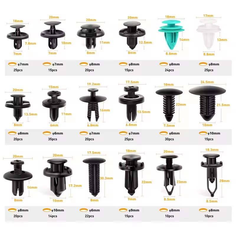 ● Material: Plástico ● Local de origem: Zhejiang, China ● Finalidade: Para substituir/reparar ● Condição: Novo ● Marca: QEEPEI ● Garantia: 6 meses ● Nome do produto: Clipes de retenção com kit removedor de fixadores ● Pacote: Embalado ● Cor: Cor mostrada ● MOQ: 50 caixas ● Qualidade: alta qualidade