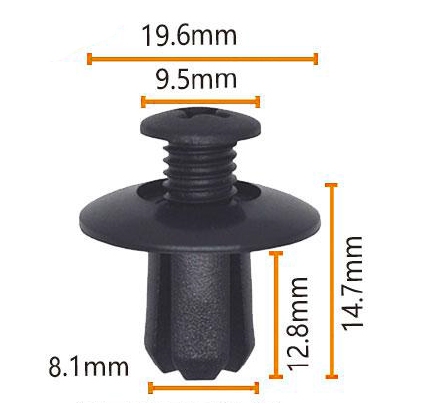 Este clipe de carro universal é um bom vendedor, o tamanho é preciso para 0,1 mm, para que as partes do seu carro possam caber firmemente, largura 19,6 mm, altura 9,5 mm.