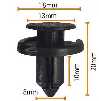 O clipe do carro tem um diâmetro superior reduzido de 18 mm, um diâmetro inferior de 13 mm, um comprimento de 20 mm e uma espessura lateral de 8 mm.